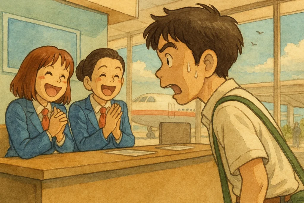 Two female ground staff were chatting and laughing behind the counter. I walked up to them, took a deep breath, gathered every ounce of courage I had, and asked my question.